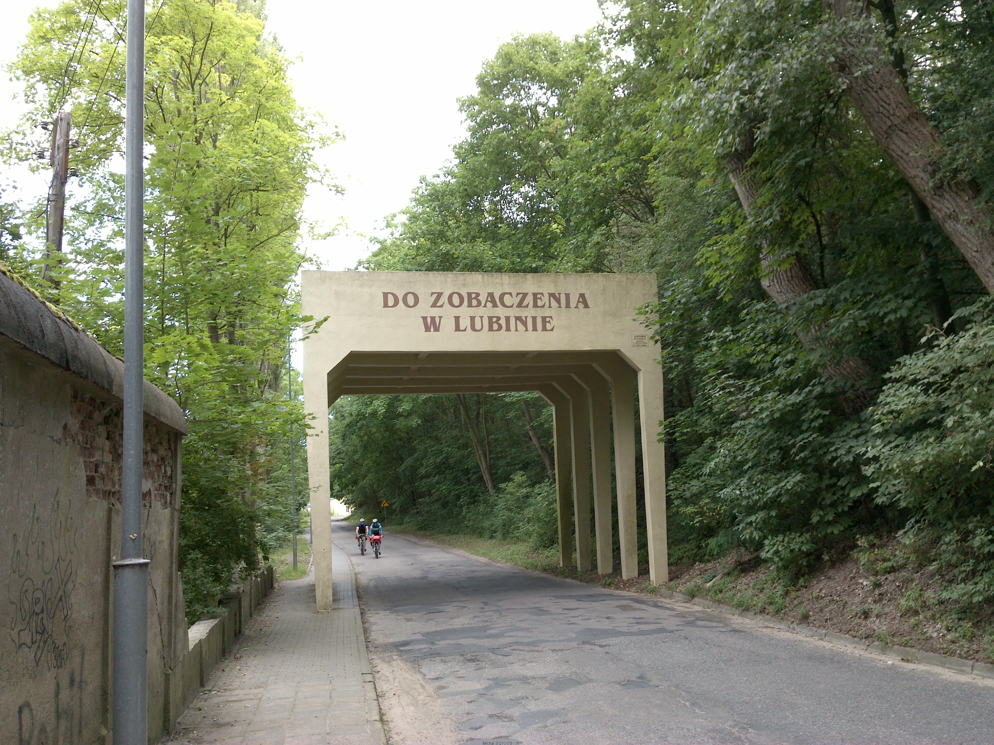 Mapy z zaznaczoną trasą pieszej wyprawy, początek w Wapnicy, dalej przez teren parku do Lubinia, ponownie Wapnica i Zalesie: